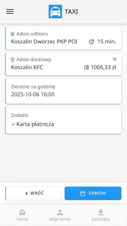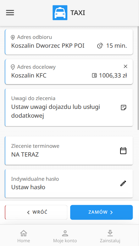 - Poprawka wyświetlania punku odbioru i celu przy szacowaniu ceny dla kursów poza strefą miejską.