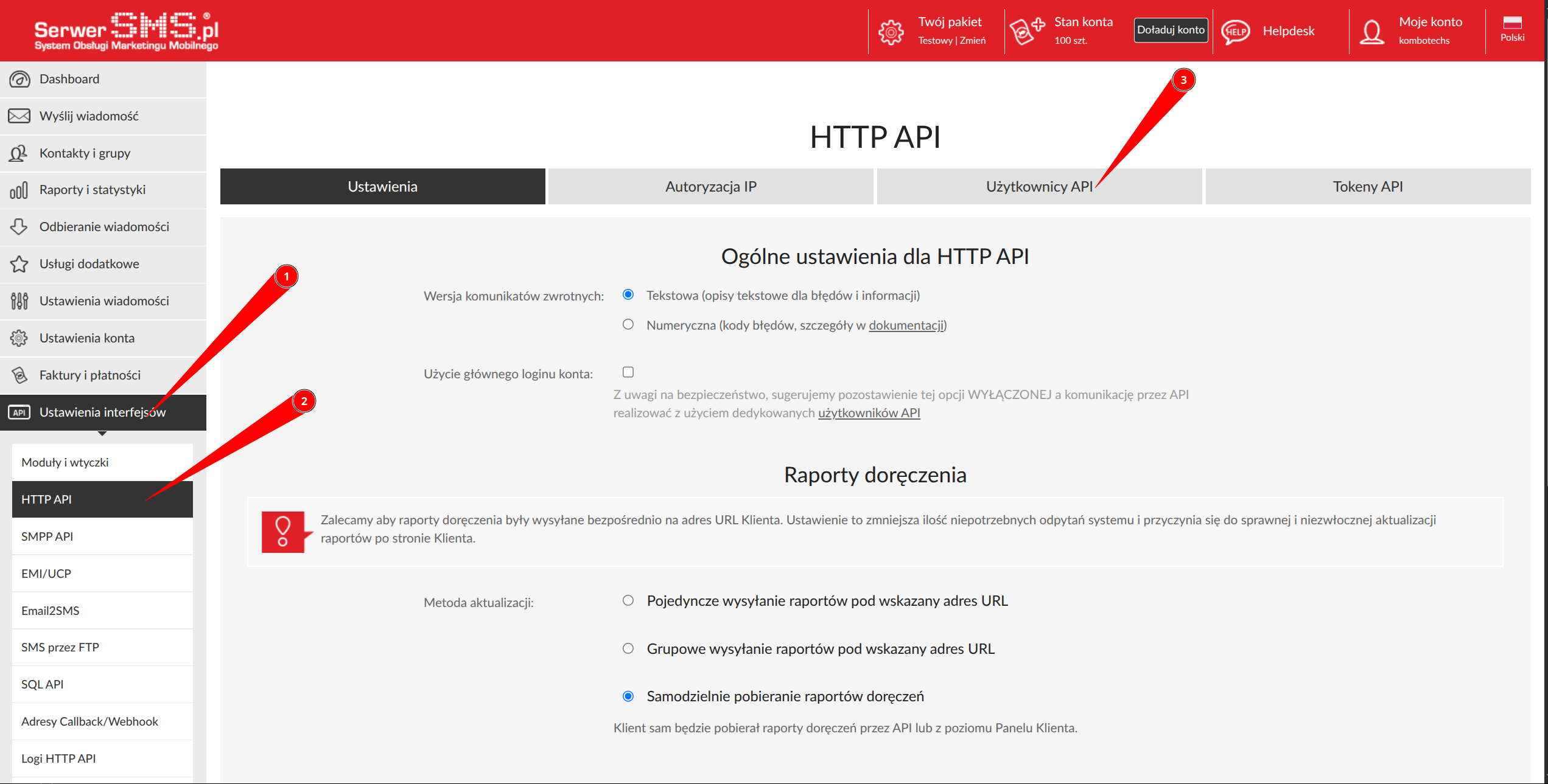 - Nazwę i hasło nowego użytkownika API oraz wybrany nadpis (nazwę nadawcy), prześlij do nas, abyśmy mogli skonfigurować wysyłkę w systemie.